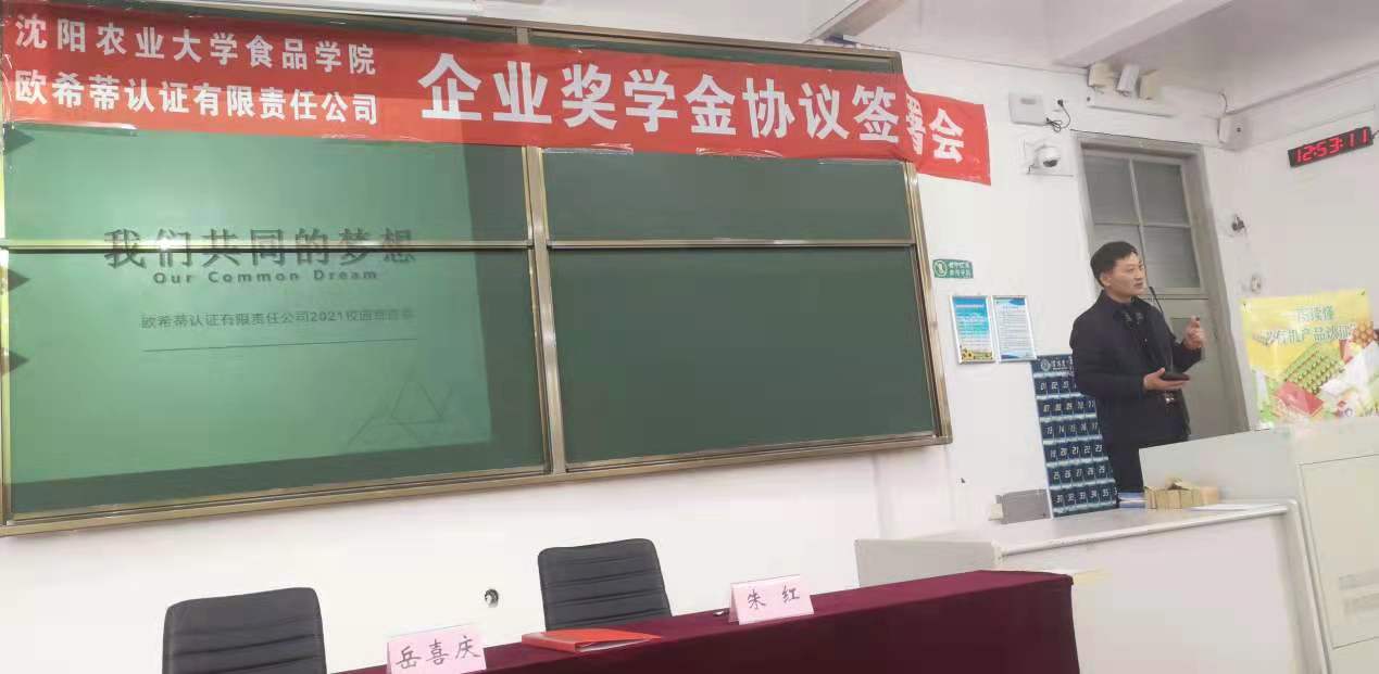 欧希蒂认证有限责任公司与沈阳农业大学食品学院企业奖学金协议签署会顺利举行